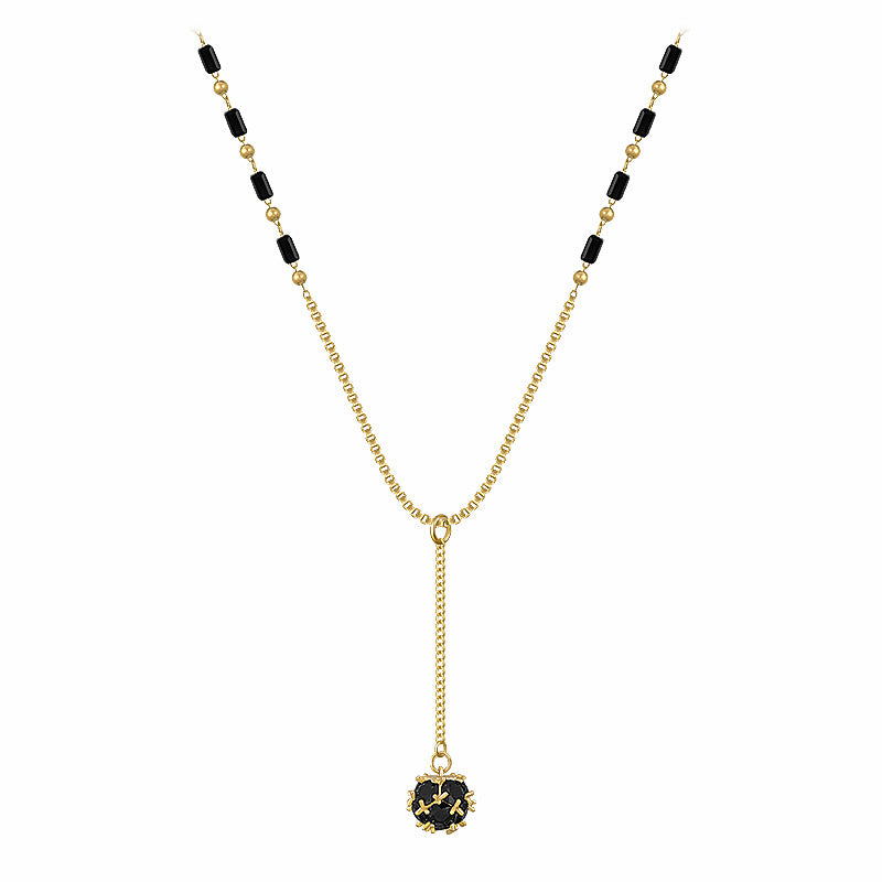 Elegant & Captivating Design The "Layali" necklace gracefully follows the neckline. Its fine golden chain flows into a sleek drop adorned with a sparkling pendant, like a star suspended in the night. The rectangular black beads along the chain evoke the geometric patterns of traditional Moroccan zellige, while maintaining a modern, minimalist style.